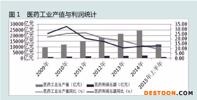 國家統(tǒng)計局發(fā)布的數(shù)據(jù)顯示,2015年1-6月,醫(yī)藥工業(yè)實現(xiàn)主營業(yè)務(wù)收入12,355.61億元,同比增長8.91%,高于全國工業(yè)整體增速7.51個百分點,但較上年同期降低4.76個百分點;實現(xiàn)利潤總額1262.05億元,同比增長12.85%,高于全國工業(yè)整體增速13.55個百分點,但較上年同期降低1.87個百分點。
