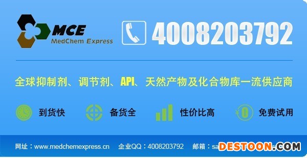 公司介紹:MedChemExpress(MCE)專注于各種抑制劑、激動劑、API及化合物庫,總部位于美國新澤西,分別在瑞典和上海設(shè)有歐洲區(qū)子公司和亞洲區(qū)總代理,營銷網(wǎng)點(diǎn)遍及全球20多個(gè)國家地區(qū)。MCE經(jīng)過多年努力已成為全球生物活性小分子領(lǐng)域的一流供應(yīng)商, 產(chǎn)品涵蓋癌癥、神經(jīng)科學(xué)、抗感染、表觀遺傳學(xué)等20個(gè)熱門研究領(lǐng)域,PI3K、MAPK等近千個(gè)細(xì)分靶點(diǎn),超過4000個(gè)活性小分子化合物現(xiàn)貨,以及GPCR、API、離子通道等超過20種不同類型的化合物庫,同時(shí)提供從毫克到千克的專業(yè)定制合成服務(wù)。