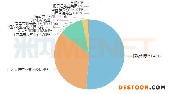 米內(nèi)網(wǎng)數(shù)據(jù)顯示,2019年在中國城市公立醫(yī)院、縣級公立醫(yī)院、城市社區(qū)中心及鄉(xiāng)鎮(zhèn)衛(wèi)生院(簡稱中國公立醫(yī)療機構(gòu))終端,注射用艾司奧美拉唑鈉的銷售額已超過30億元。阿斯利康的原研產(chǎn)品于2007年獲批進口,近幾年隨著國產(chǎn)仿制藥陸續(xù)獲批上市,原研產(chǎn)品的市場份額急速下滑,2019年阿斯利康的市場份額僅為51.48%。國內(nèi)藥企方面,獲得批文的企業(yè)超過30家,其中正大天晴、奧賽康具有領先地位,合計市場份額已上漲至45%以上。