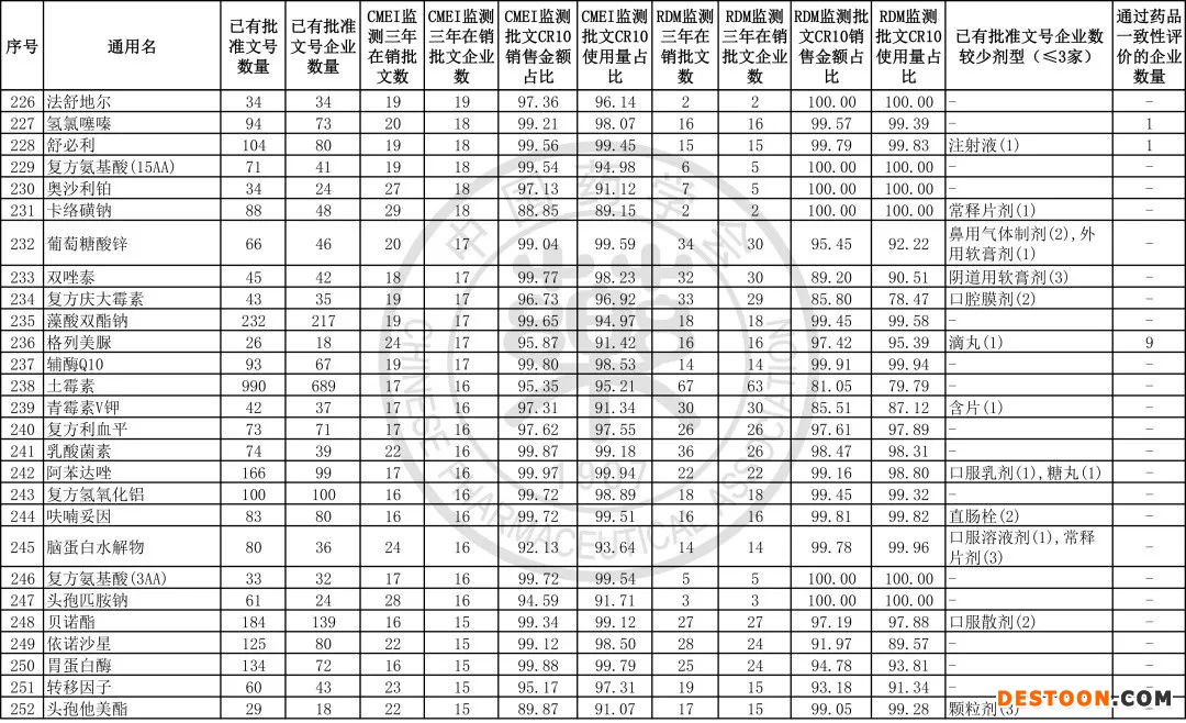 根據(jù)公告顯示, 該目錄是中國藥學(xué)會(huì)和國家藥品監(jiān)督管理局信息中心、南方醫(yī)藥經(jīng)濟(jì)研究所共同協(xié)作,對(duì)已獲批上市藥品在2017-2019年間的銷售情況進(jìn)行監(jiān)測(cè)分析,形成第六批過度重復(fù)藥品提示信息目錄,共302個(gè)過度重復(fù)品種,涉及臨床藥理學(xué)和治療學(xué)分類的14個(gè)大類、60個(gè)亞類,與《關(guān)于發(fā)布第五批過度重復(fù)藥品提示信息的公告》發(fā)布的過度重復(fù)品種目錄相比,調(diào)出1個(gè)品種;目錄提示信息新增兩項(xiàng)數(shù)據(jù)內(nèi)容,一是基于中國上市藥品目錄集對(duì)通過仿制藥質(zhì)量和療效一致性評(píng)價(jià)的企業(yè)數(shù)量進(jìn)行標(biāo)注;二是基于藥品已有批文數(shù)據(jù)庫,對(duì)已有批文企業(yè)數(shù)≤3的劑型進(jìn)行標(biāo)注。