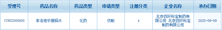 9月11日訊 日前,北京四環(huán)科寶制藥的非洛地平緩釋片以仿制4類提交上市申請獲受理。米內(nèi)網(wǎng)數(shù)據(jù)顯示,2019年中國公立醫(yī)療機(jī)構(gòu)終端非洛地平片劑銷售額超過20億元,其中,阿斯利康市場份額占比最大,達(dá)58.73%。