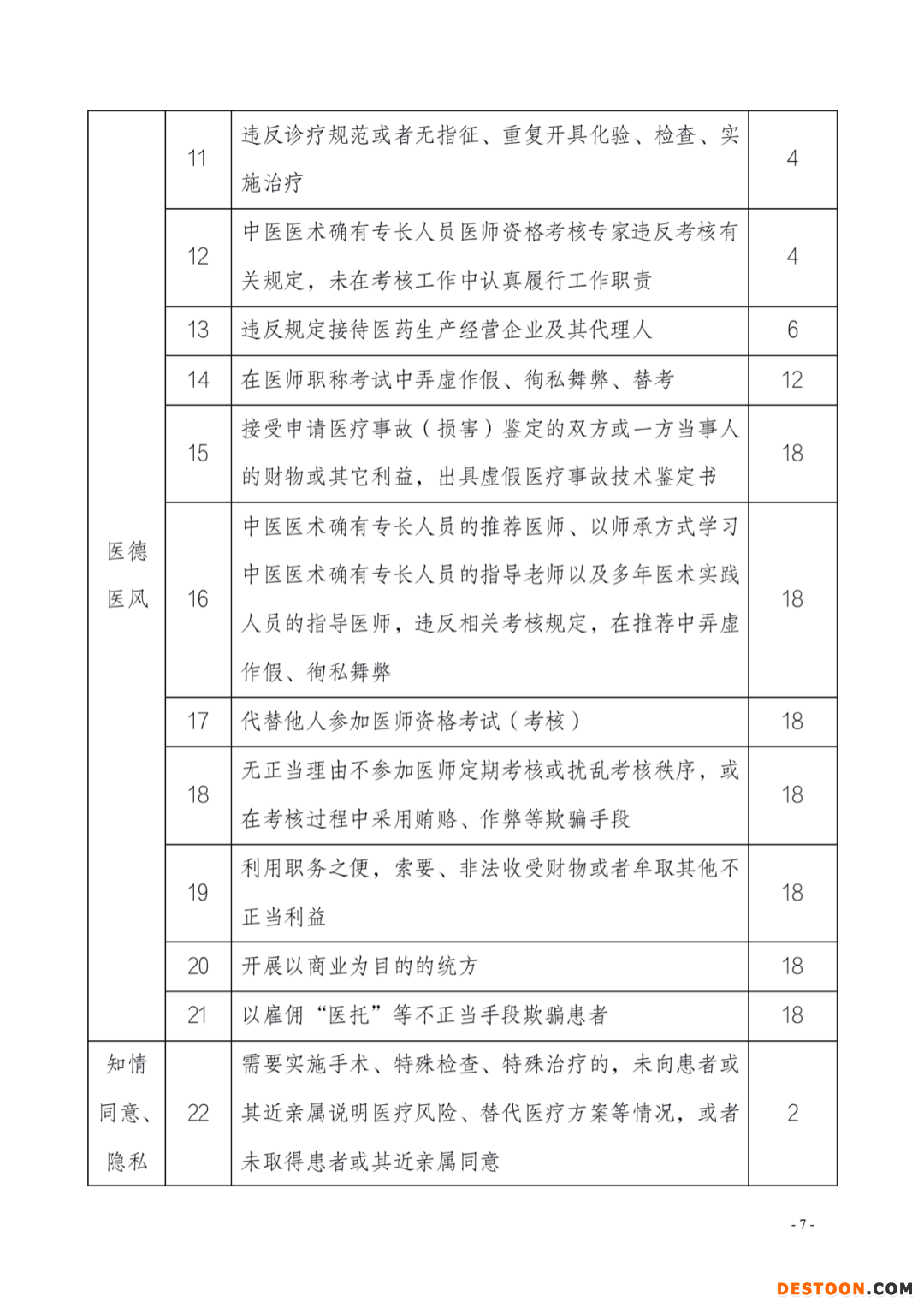 值得注意的是,醫(yī)生出現(xiàn)不同的行為,對(duì)應(yīng)不同的分值,記分在1-18分不等,其中18分為最重的記分,同時(shí)被記18分的行為還有:一個(gè)考核周期內(nèi)開(kāi)具不合理處方5次以上;參與買賣人體器官或者從事與買賣人體器官有關(guān)活動(dòng)等。