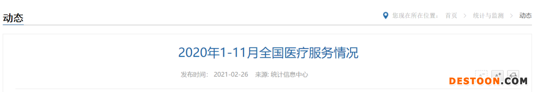 數(shù)據(jù)顯示,2020年1-11月,全國醫(yī)療衛(wèi)生機構(gòu)總診療人次達(dá)49.5億人次(不包含診所、醫(yī)務(wù)室、村衛(wèi)生室數(shù)據(jù)),同比下降11.5%。