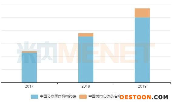 原研產(chǎn)品在醫(yī)保的推動(dòng)下,在中國(guó)城市公立醫(yī)院、縣級(jí)公立醫(yī)院、城市社區(qū)中心及鄉(xiāng)鎮(zhèn)衛(wèi)生院(簡(jiǎn)稱(chēng)中國(guó)公立醫(yī)療機(jī)構(gòu))終端的銷(xiāo)售額節(jié)節(jié)攀升,而在中國(guó)城市實(shí)體藥店終端的銷(xiāo)售額更是以驚人的速度在上升,2018-2019年增速均超過(guò)100%,該產(chǎn)品2019年合計(jì)銷(xiāo)售額超過(guò)28億元,2020年有望突破30億元關(guān)口。